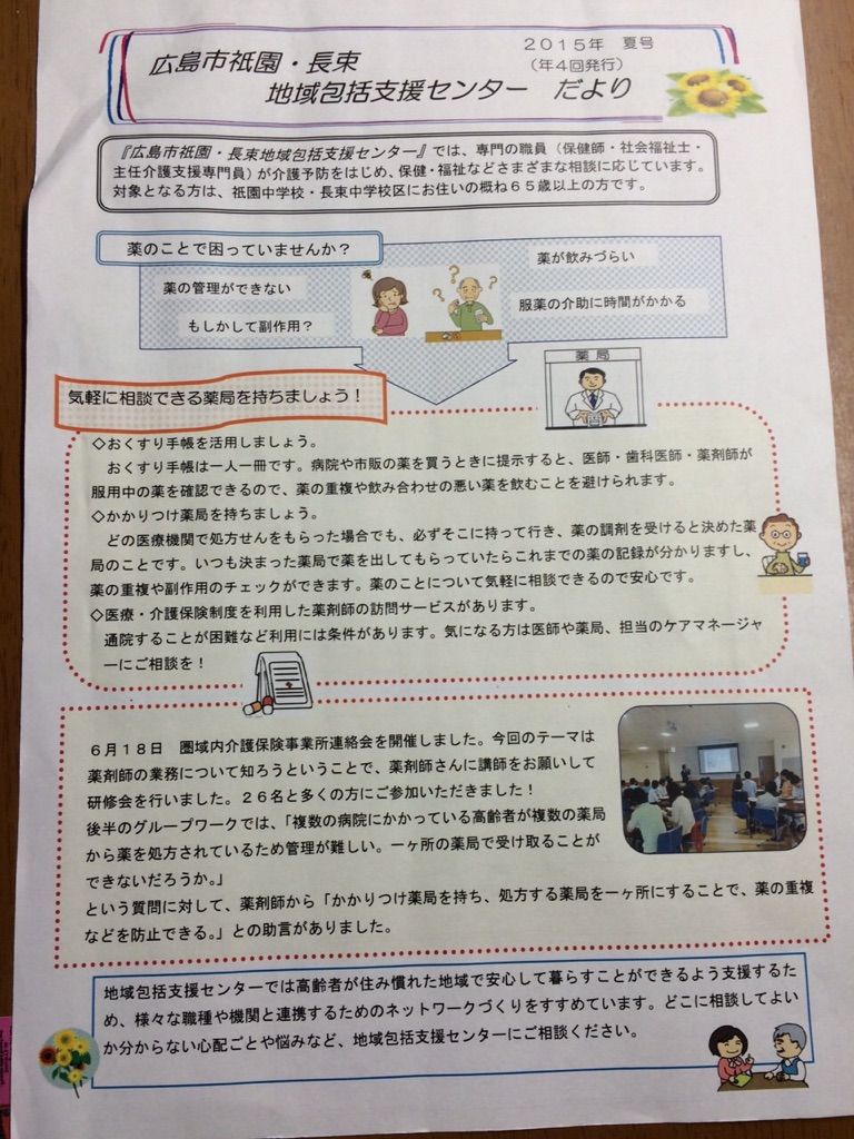地域の回覧板にも地域包括センターからのお知らせがあり、お薬手帳のことが載っていました。