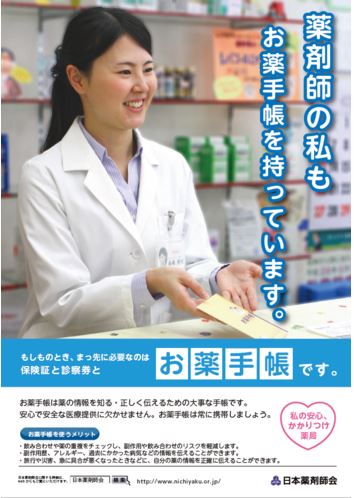 それが理由か、日本薬剤師会が「お薬手帳携帯促進ポスター」の配布を始めました。
