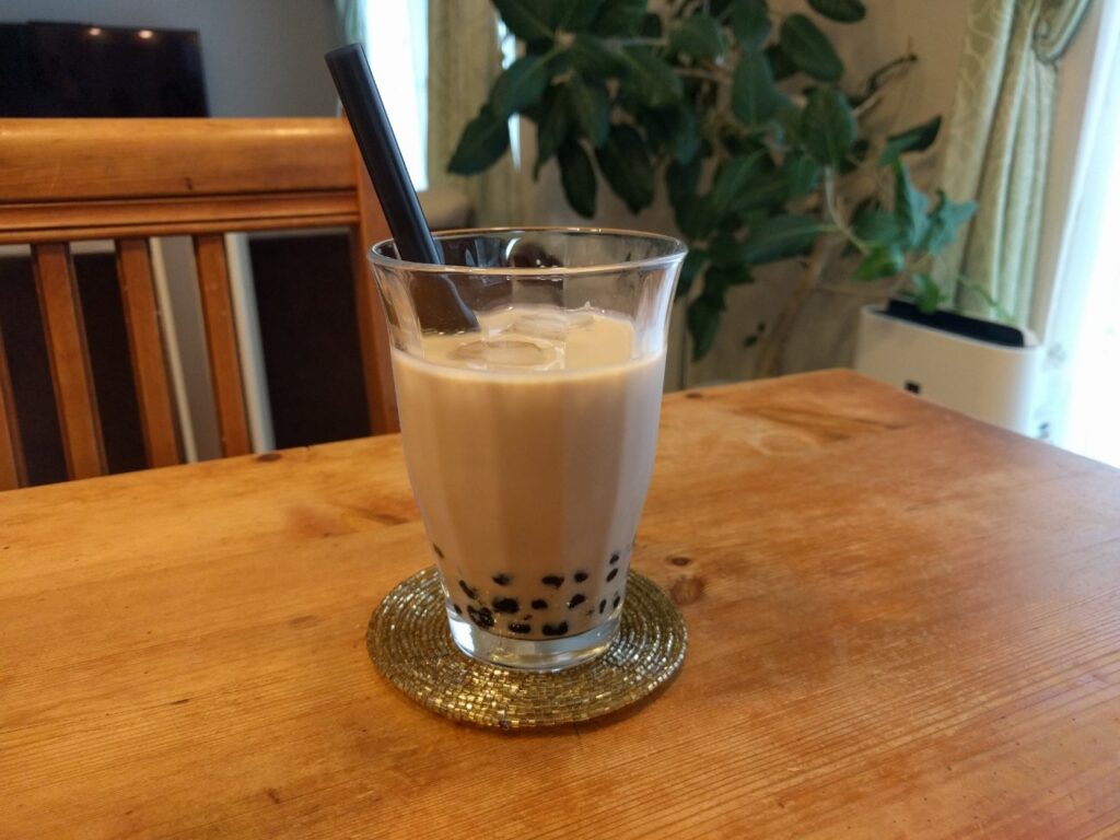 実はこちら、今流行のタピオカミルクティーの冷凍、しかもストローも一緒に冷凍されています。