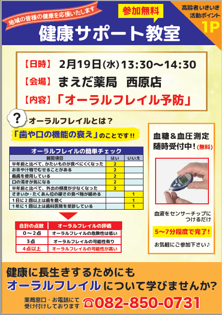 次回は2月19日(水)13:30~ 「オーラルフレイル予防について」です
