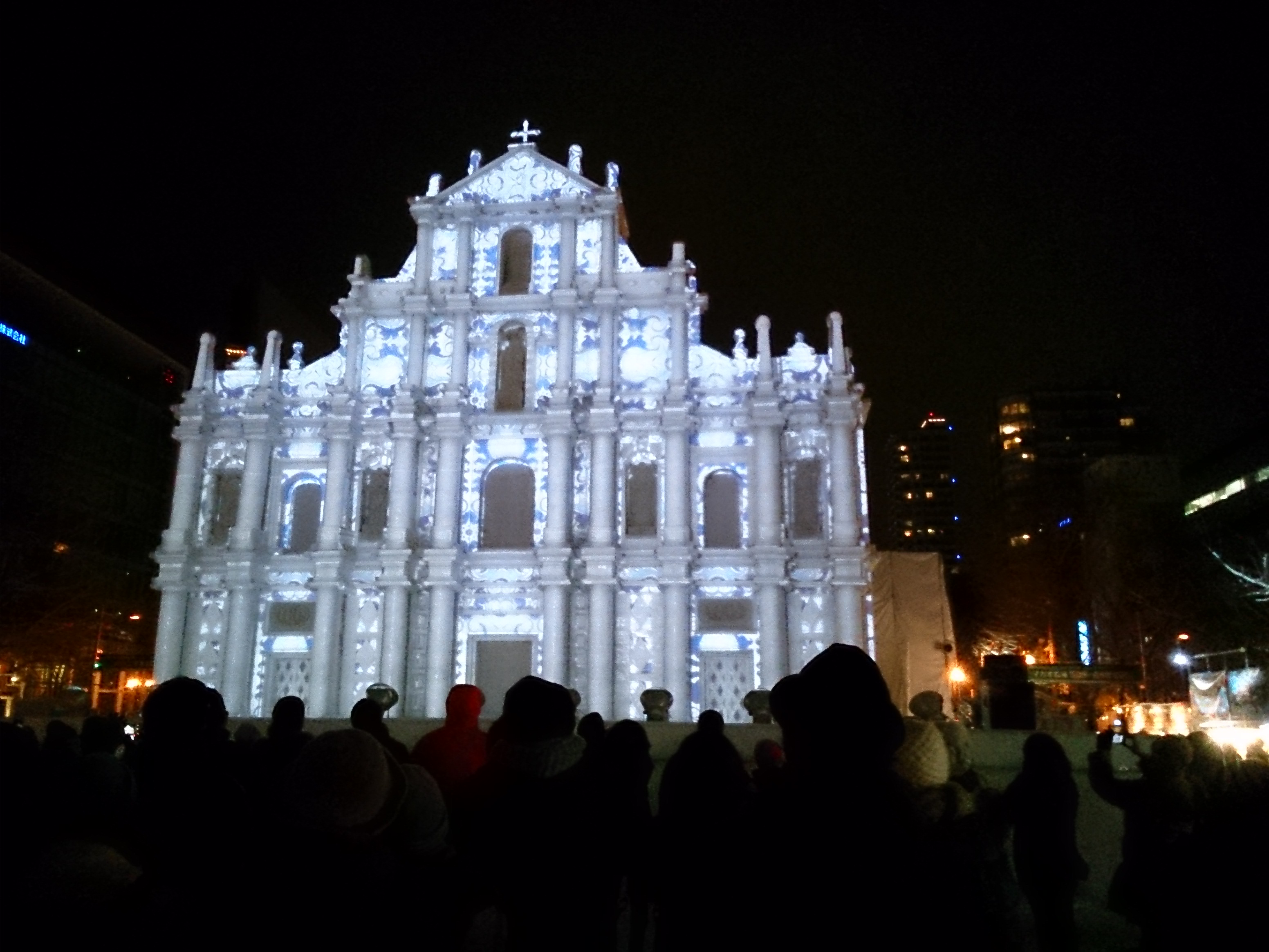 三太郎 氷の彫刻 マカオのお城  お城夜