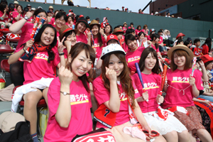 彼女たち、広島とは由縁もないのに、カープファンで球場に応援に来るらしいです。