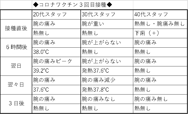 年代別に接種後の表を作成しましたのでみなさんの参考になればと思います。