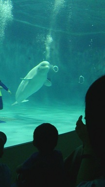 携帯で撮った写真なのであまりきれいに撮れていませんが、シロイルカに癒された1日でした。