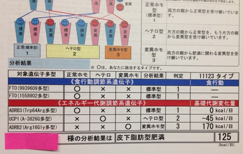 前回のダイエット遺伝子(肥満遺伝子)検査の続きのお話です。