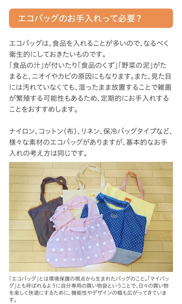 またエコバッグを利用される方も多いと思いますが、快適に使うためにお洗濯などのお手入れもお忘れなく。