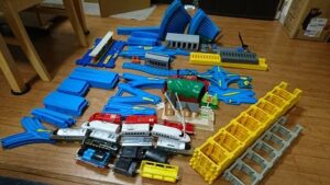 わが家の収納スペースの大部分を占めていました。4年生になり遂に思い立って処分を決意。ちょっぴり寂しくて思い出に浸りながら並べました。