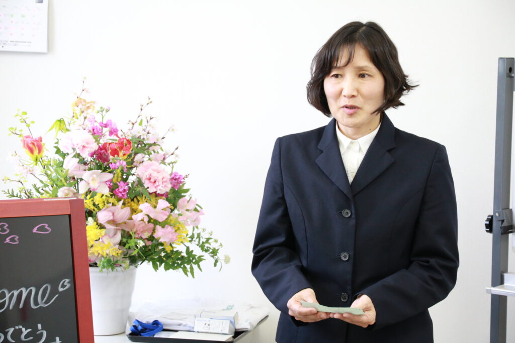(司会の私もずっと緊張していました)終わった後、S先生の笑顔が見れてホッとしました。育休中にもかかわらず式に参加し、先輩薬剤師からのことばを贈ってくれたF先生、管理の先生からの温かい励ましのお言葉に私までうれしくなりました。