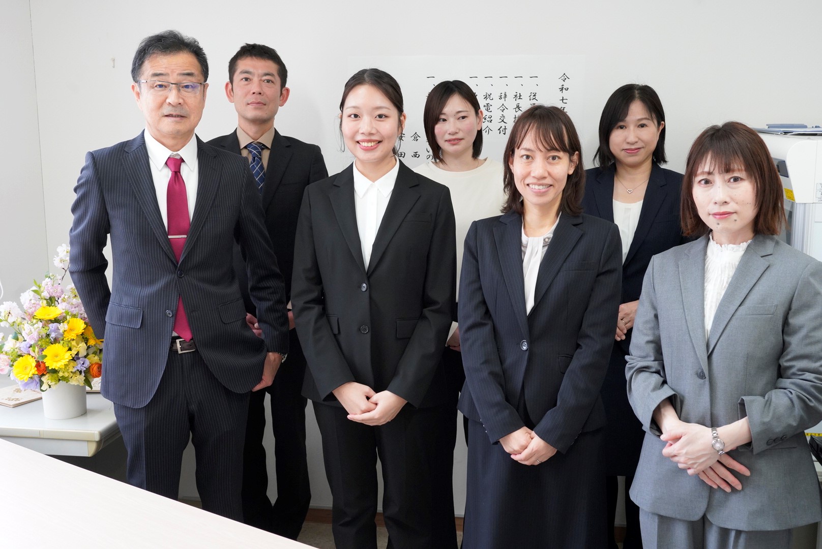 社長をはじめ先輩からの挨拶、多数の祝電までいただき、笑顔あふれるアットホームな式となりました。
