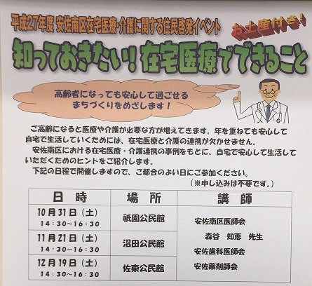 先月から広島市安佐南区で、在宅・介護に関する住民啓発イベントが各地区にて行われています。