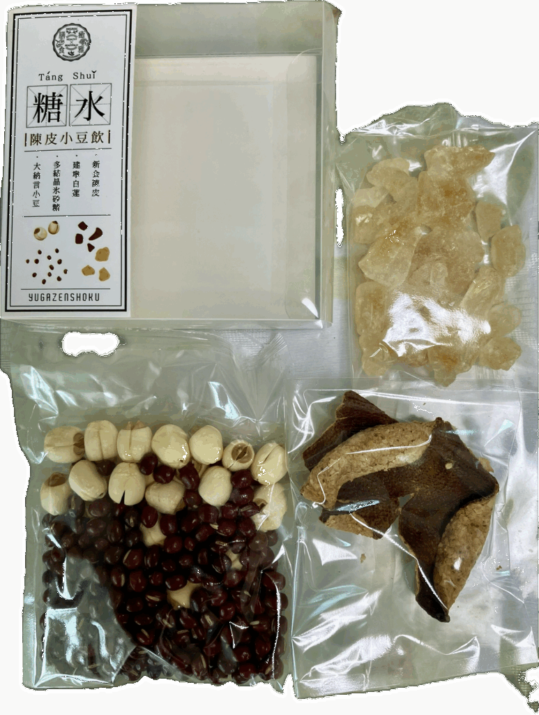 薬膳食材を扱うお店に糖水のセットがあり、今回は小豆と陳皮(温州みかんの皮を乾燥させた生薬)が入っているものにしました。