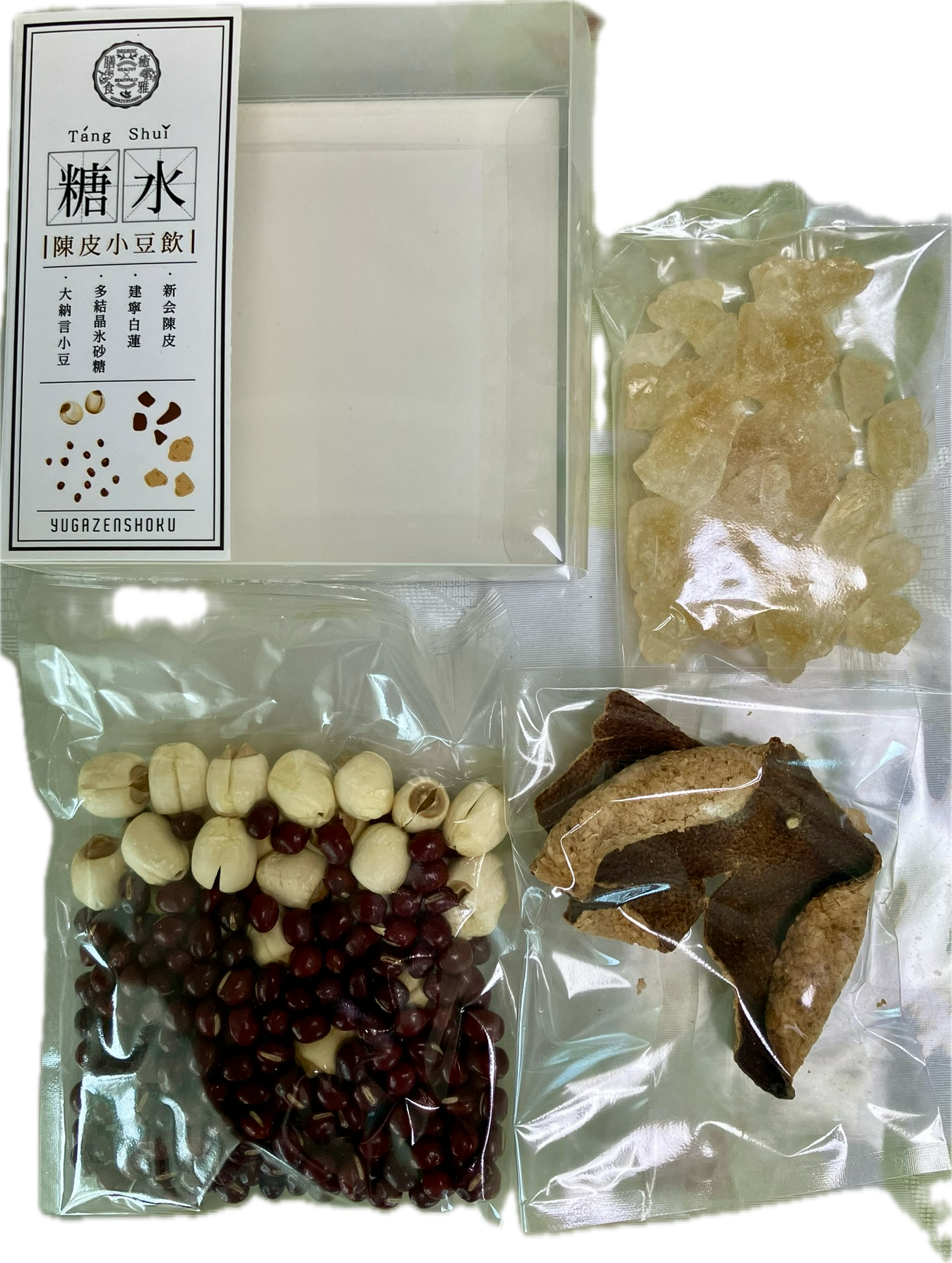薬膳食材を扱うお店に糖水のセットがあり、今回は小豆と陳皮(温州みかんの皮を乾燥させた生薬)が入っているものにしました。