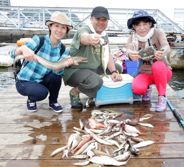 大漁 part2 投稿日 2015年7月10日 更新日 2026年1月23日 著者 5ssol カテゴリー 日記 7月5日(日)午前6:00 ファインプラス号 宇品出港! 前日の雨予報を覆して絶好の釣り日和。 今日の狙いはメバル、キス、チダイです。 こんな大きなキス見たこと無い! ホウボウっていうんですって。 今日の釣果です! 釣れた!釣れた!! メバル、キス、トラギス、グチ、マダイ、ホウボウ、カサゴ、ベラ、マルハゲ、マルアジ、小イワシ なんといっても一番の大物はハモでした! 広島市の調剤薬局グループ 株式会社ファインプラス まえだ薬局西原店 薬剤師 Y・T 投稿 Threads