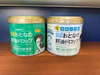 もう一つ「おとなの肝油ドロップ カルシウムプラス」吸収型カルシウムが300mg配合されており成長期の子どもさんにぴったりの商品です。(牛乳で乳糖不耐症になる方でも食べられます。)