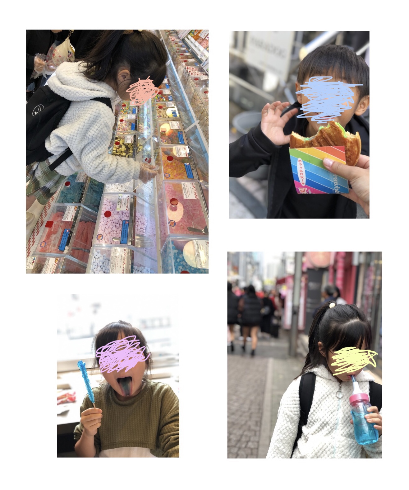 原宿では、不気味な色の不健康そうな食べ物ばかり食べたがり、普段は買いたくありませんが誕生日くらいいいか…と好きなものを食べさせてみました。