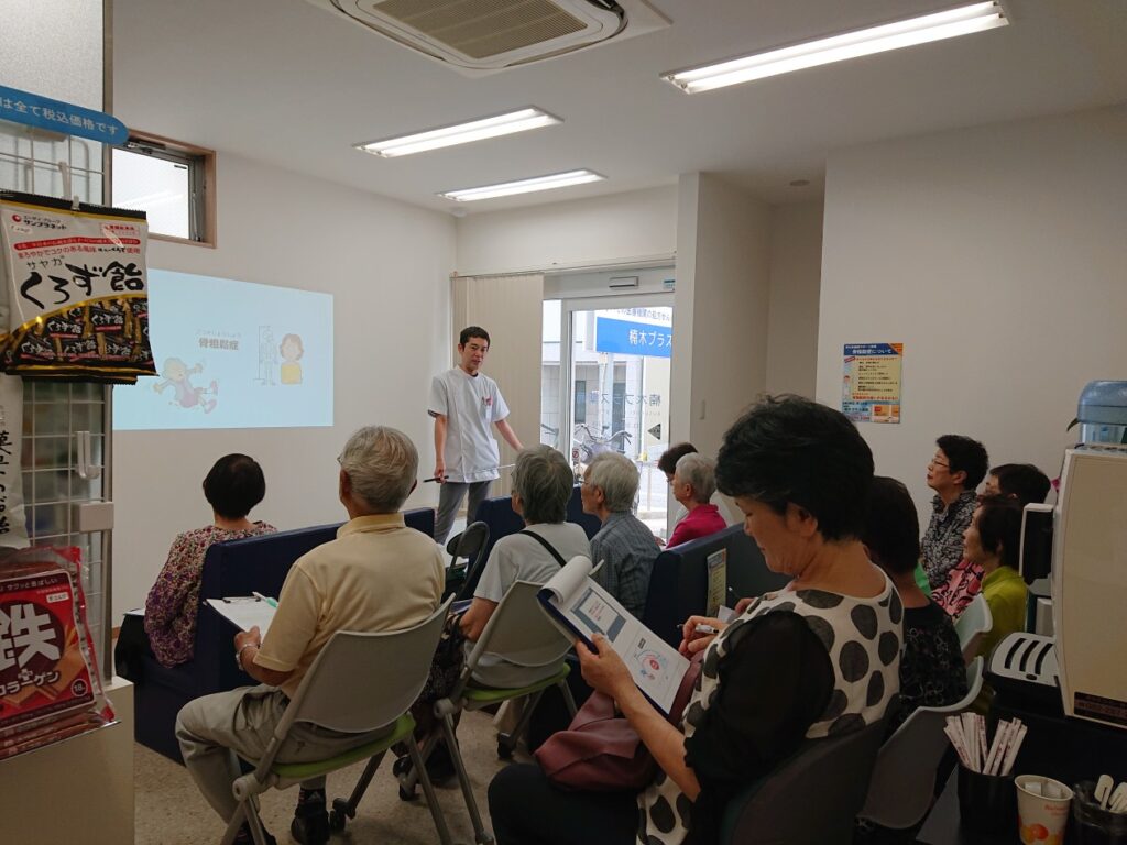 楠木プラス薬局第6回健康サポート教室開催 投稿日 2019年9月30日 更新日 2026年1月22日 著者 5ssol カテゴリー 日記 おかげさまで大盛況の楠木プラス薬局健康サポート教室も今回で第6回になりました。今回は、「骨粗鬆症」についてカルシウム摂取のポイントについてや骨の健康度チェックなどについてでした。みなさん時折うなずきながら熱心に聴かれていました。 次回は、10月28日(月)14時から第7回健康サポート教室「オーラルフレイル」についてを開催します。年齢と共に衰えやすい筋肉について、さらには口の中の健康についてもみなさんと一緒に考えていきたいと思います。是非、ご参加下さい。お待ちしています。 投稿 Threads