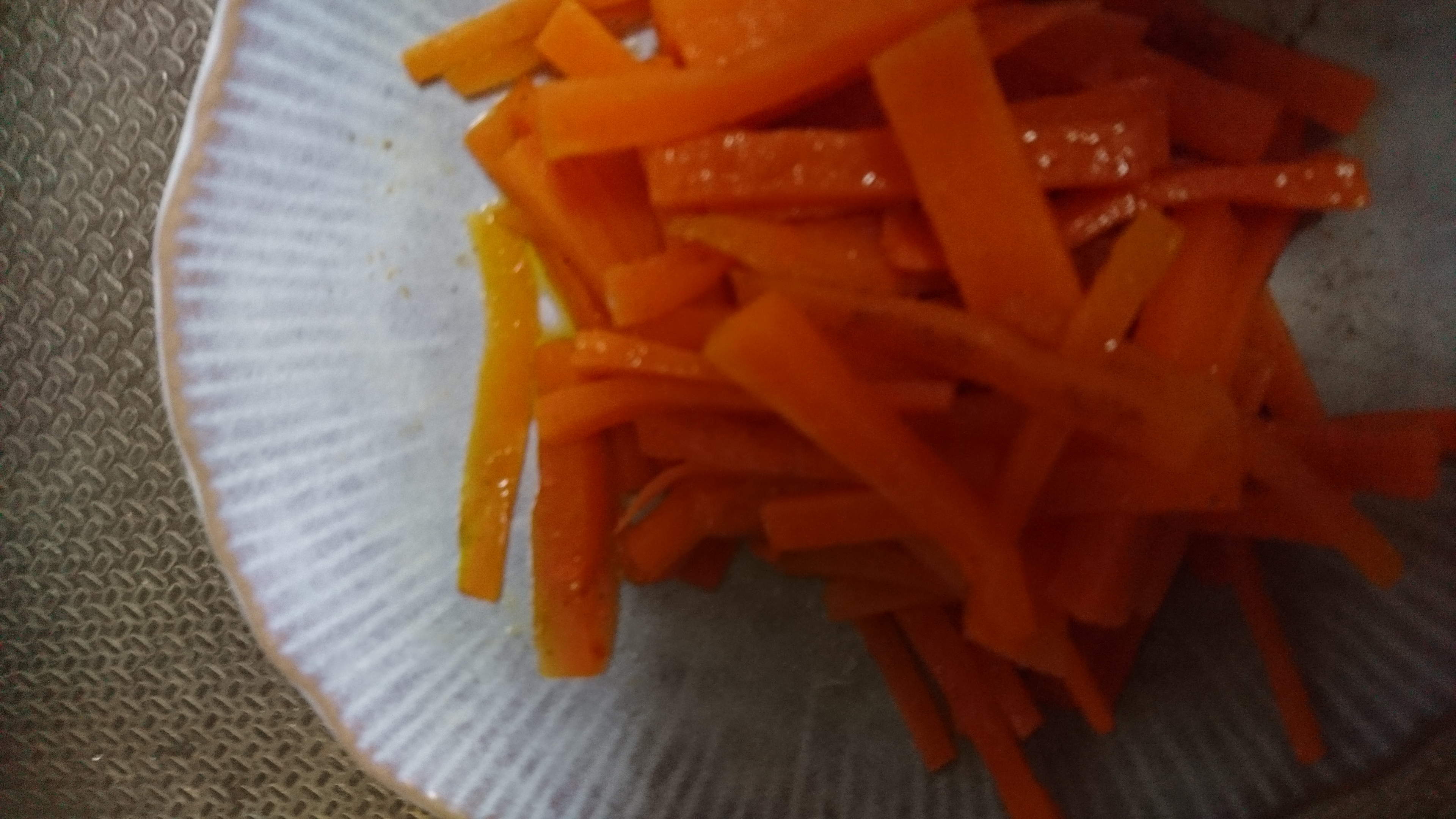 ニンジンは切っておいて500w1分半 塩こしょう、オリーブ油、すし酢をかけます