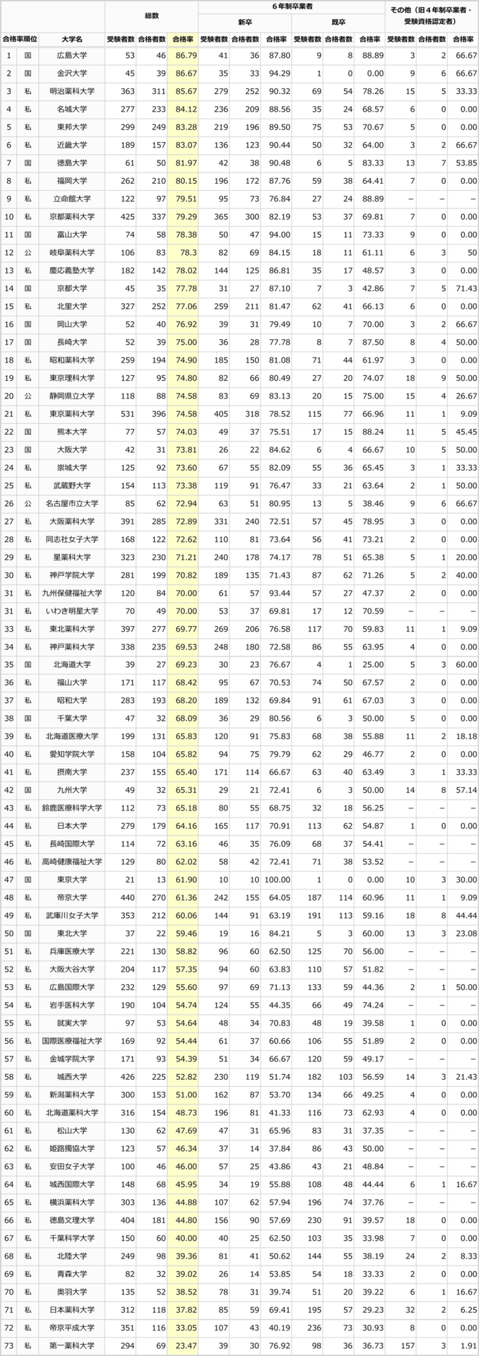 合格率トップが広島大学というのは、地元として喜ばしいことです。