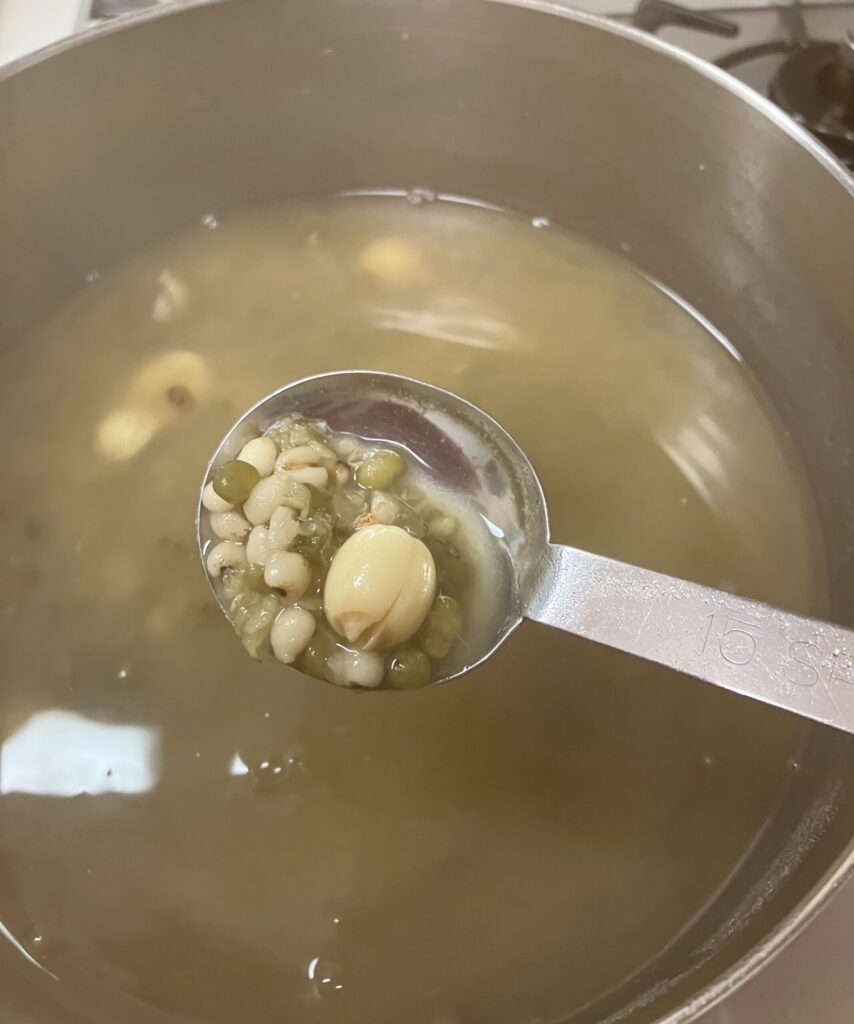 お盆休みには緑豆やハトムギ、蓮の実のぜんざいを作りました!
