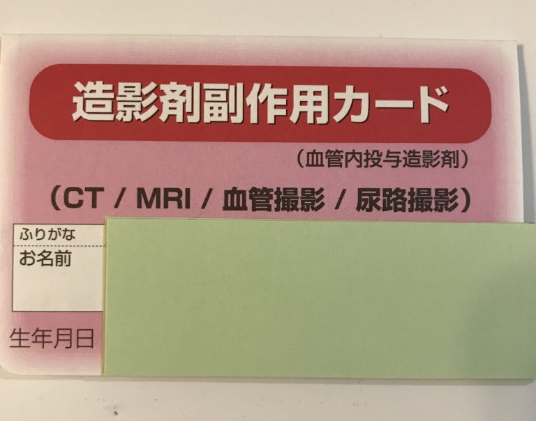検査の時しか必要ないとは思いますが、心配性の私は造影剤副作用カードをいつもお財布に入れています。