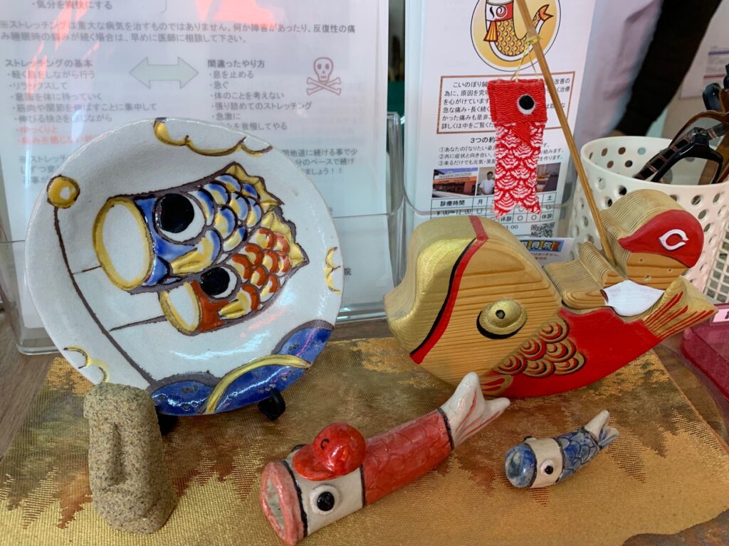 Carpつながりで、こいのぼりがあちこちに