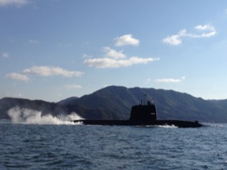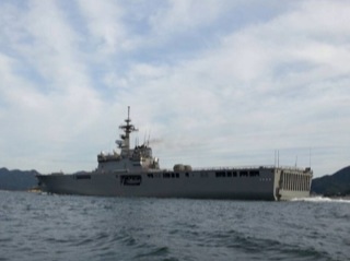 写真は以前FINEPLUS号から撮影した自衛艦です。2枚目は「おおすみ」でしょうか?