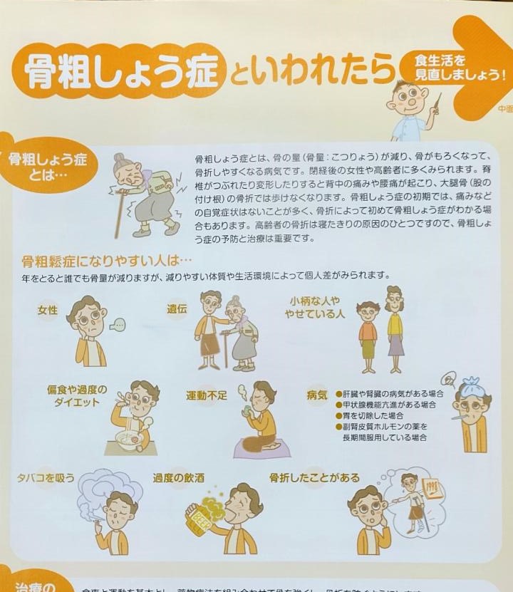 薬局で「骨粗鬆症といわれたら」の冊子を配布しています。気になる方はお声がけ下さい。