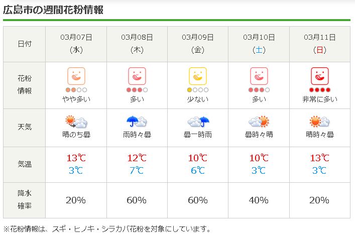3月になりました 投稿日 2018年3月5日 更新日 2026年1月22日 著者 5ssol カテゴリー 日記 広島市の調剤薬局グループ(株)ファインプラス 楠木プラス薬局 薬剤師:中西 3月になりました。 広島市ではようやくインフルエンザが下火になってきました。 まだ、注意報ですので油断はできませんが・・ ようやく少し落ち着けるか? しかし、3月に入ると増えてくるのがこれ、 あっ、患者さんが来られたようです。 今日はここまでにしておきます。 投稿 Threads