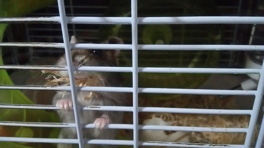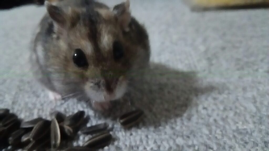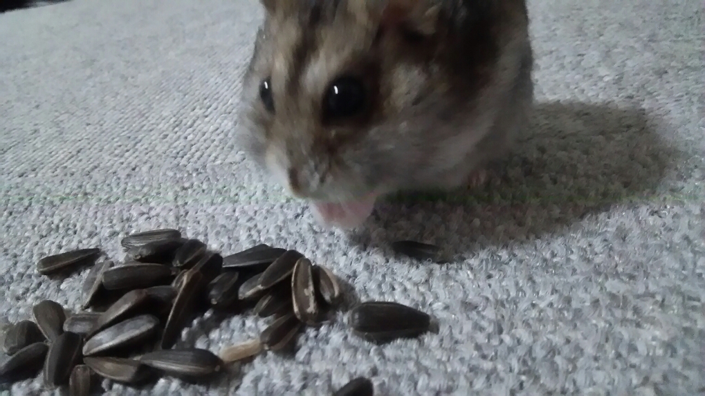 自分の体にちょうどフィットするように寝床を作るのですが、口で藁をくわえてせっせと運ぶ姿や、上手に両手を使ってひまわりの種の殻をむき、きれいに中身だけを食べる姿はほんとうに癒されます。