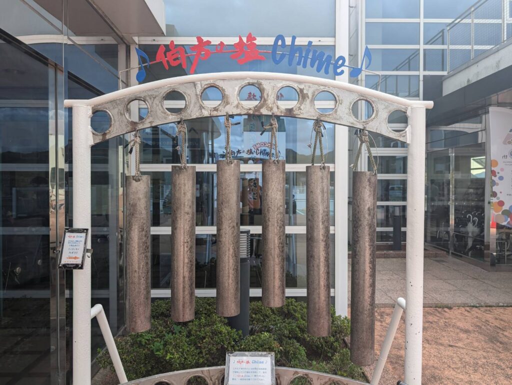 入口にチャイムがあり、左から順にリズムよく叩いていき最後の二つは八文音符で思いっきり叩くとCMでおなじみにメロディーになり、瀬戸内海に思い切りリズムよく響かせときました。