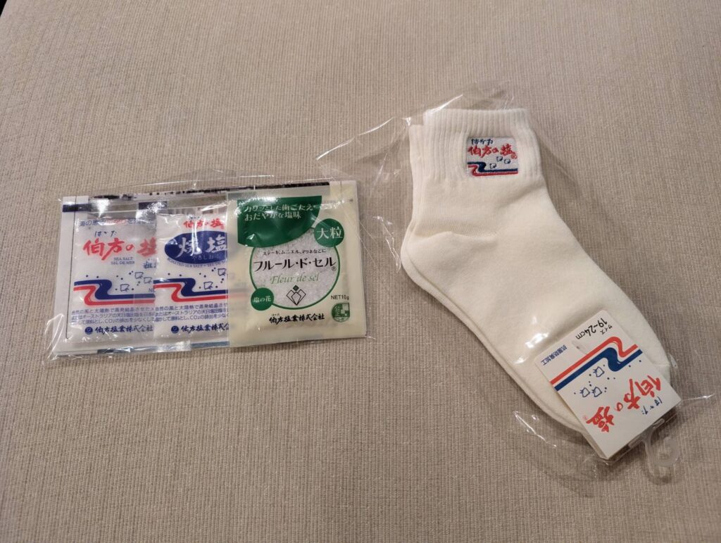 左は工場見学のお土産で、右は娘へのお土産です。「フランスみたいなトリコロールカラーでかわいい!」と早速履いていました。